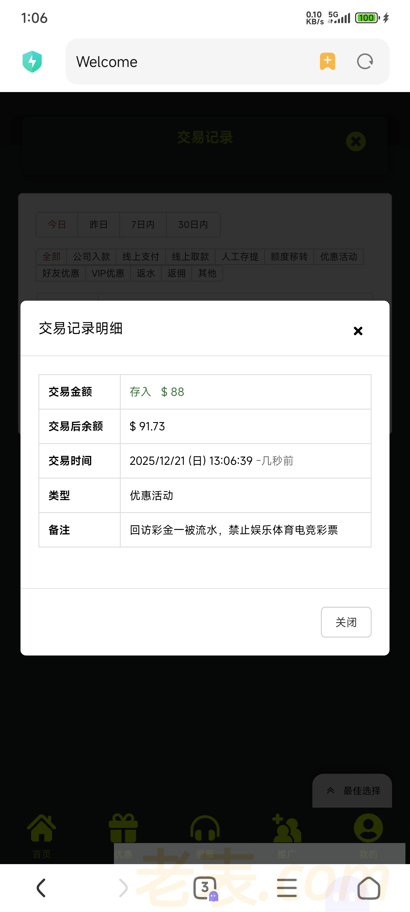 到账情况:自测(严禁充值