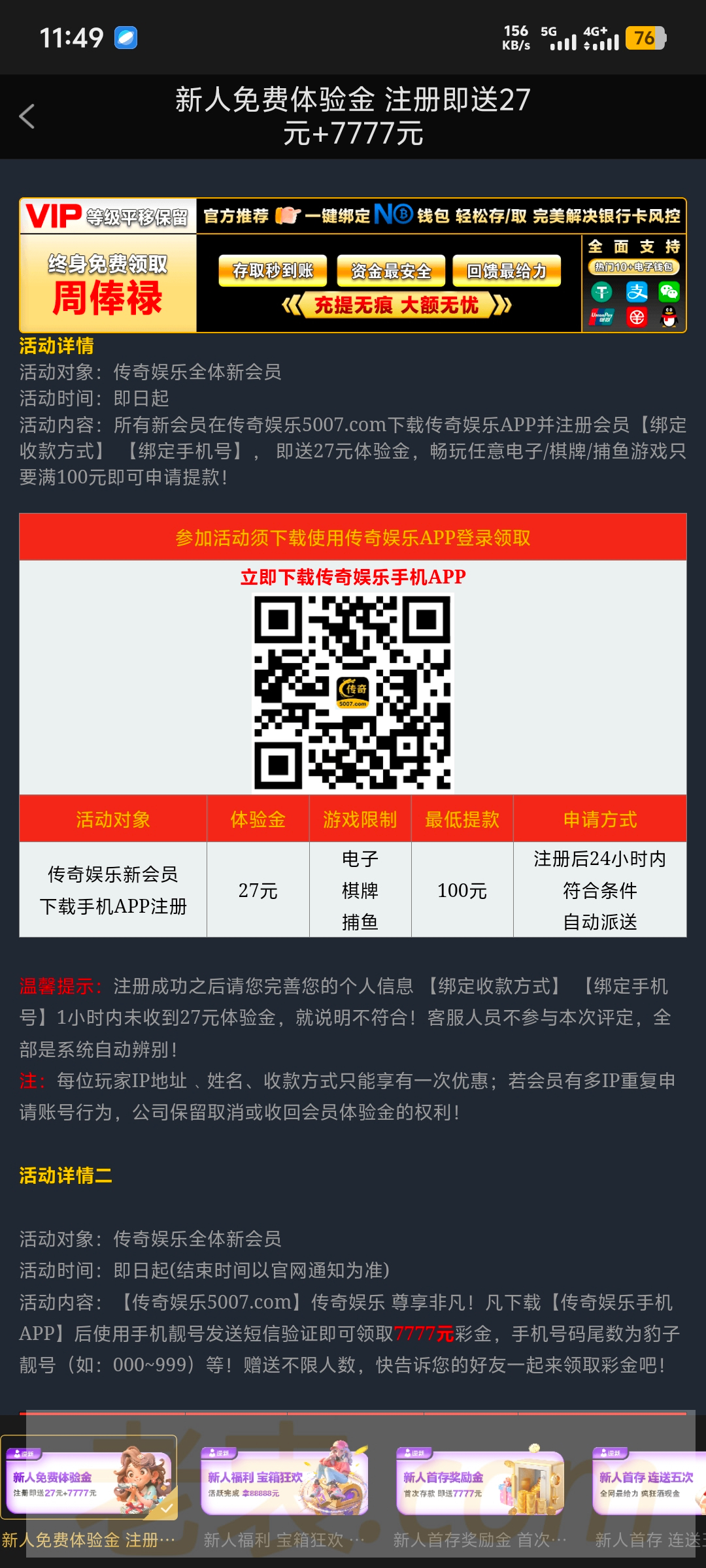 注册彩金送27